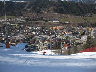 アウトバーンを降りてメインの道を進むと、道沿いに駐車場があるというわかりやすいスキー場。そこから標高差400mぐらいのリフトが縦に2本連なっています。ゲレンデからは、正面にFlachauのコースがよく見えます。コースのバリエーションはほとんどありませんが、いかにもスキーアマデの入口という感じのロケーションで、本当に何かのついででちょっと立ち寄るにはいいんじゃないでしょうか。