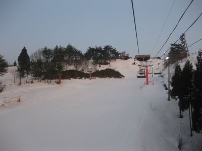 能登半島の真ん中あたりの、ちょっと予想もしないようなところにあるスキー場です。富山方面から向かう場合、国道160号で延々と富山湾沿いの海岸線を走っていき、とてもスキーに行くとは思えない雰囲気が続きます。ところがいざスキー場が近づいてくると、道は急に山の方に入っていき、30分ほど走って到着した場所からは海が見えるわけでもない。そんな不思議なスキー場です。それほど山が険しいロケーションでも無く、基本的には短いリフトが1本のみ。そのリフト沿いに、上級・中級・初級の3種類のコースがあるのですが、どれも30秒ぐらいで終わってしまいます。富山や高岡からは微妙な距離ですが、七尾市中心部からのお客さんが中心なんでしょうね。