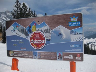 滑り始めてから看板を見て気付いたのだが(上の写真)、ここHochkönigには、"Königstour"というツアールートが設定されている。実はよく見るとコースマップにも書かれているのだが、要するに、東の端のMühlbachから西の端のMaria Almまで、あるいはその逆を、効率的に移動しながら滑るための順路である。普通の人は片道でやるのだろうが、これを往復で滑りきってしまえば、このエリアの大半を滑ってしまうことができそうだ。