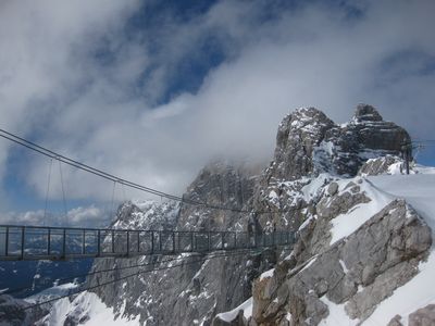 ここから断崖絶壁にかかったロープウェイで山頂を目指す。山頂駅の標高は2,700mで、スキーアマデの最高点ということになる。ちなみに、この山頂駅から尾根伝いに2kmほど西に行ったところが、Dachstein山塊の最高峰であるHoher Dachstein(2,995m)ということになるらしい。