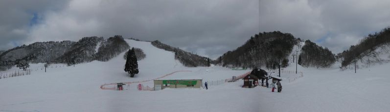 次は木谷コースだと思ってリフトに乗ろうとしたら、係員のおじさんが「まだ時間あるでしょ」と言ってリフト1回券を返してくれる。昨日の花見山に続くサービスだ。おかげでその後もう一回リフトに乗り、女良谷コースまで滑って全コース制覇である。